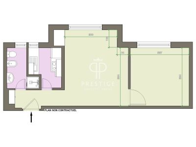 Located on the Boulevarde de Belgique in the Jardin Exotique district, the 55 m2 property includes an entrance hall, a small fitted kitchen, a living room, a bedroom, and a shower room.