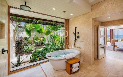 The 1,225 sq. ft. villa blends island luxury, coastal serenity, and modern design. The interior features a bright, open-plan layout with floor-to-ceiling sliding glass doors that frame spectacular ocean vistas.