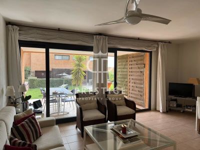 The well -maintained and spacious property includes a large living room / dining room with a wall of patio doors leading to a private terrace with direct access to the swimming pool area, a modern kitchen with new appliances, the hallway from where you access the 3 bedrooms; principal bedroom with patio doors to the pool area, built in wardrobes and ceiling fan, bedroom 2 with a terrace off and a single bedroom again with a terrace off.