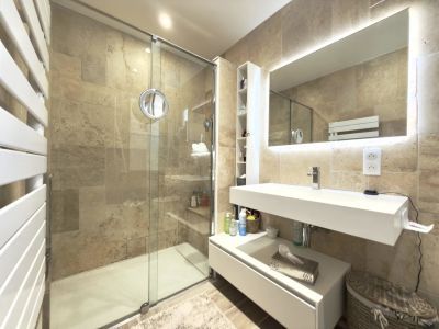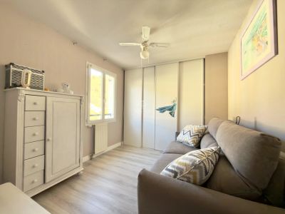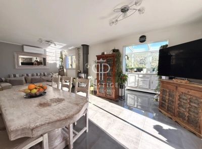 Ground floor: a bright reception room with large windows, a fully equipped kitchen, and a ground-floor bedroom with its own bathroom and wc. The living areas open directly onto a terrace and a 340m2 garden facing south and west, with a swimming pool and a Jacuzzi.