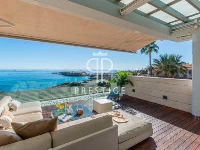 This spacious 272m2 property represents a rare opportunity beside the marina of El Campello, Alicante occupying the top corner position of an exclusive residential building in a quiet cul-de-sac offering the privacy and atmosphere of a beach-front villa, combined with the elegance and panoramic outlook of a penthouse residence.