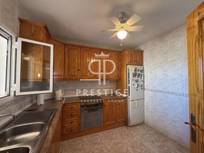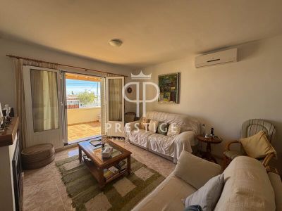 The property comprises a hallway, living room with patio doors to a terrace with sea views, a good-sized kitchen with a good supply ...