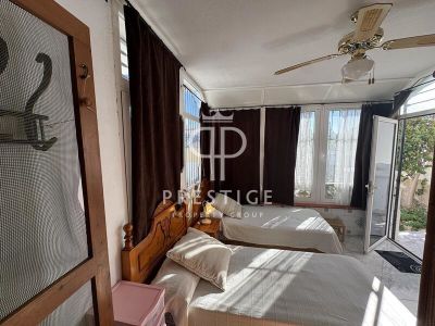 Air conditioning is in the living room, pre-installation gas radiators are on the ground floor, there is a storeroom and electric gates at the entrance.