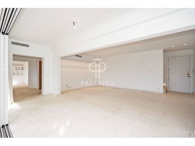 The bright and spacious living and dining room with fitted kitchen opens fully to the outdoors thanks to large sliding glass doors that disappear into the walls, merging the interior with the covered terraces in a fluid and elegant way.