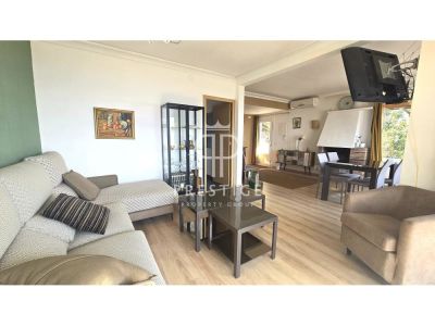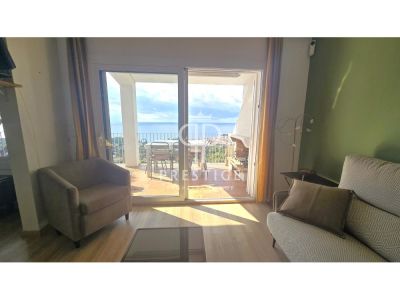 The lower floor provides a separate apartment with a living-dining room and access to the terrace with panoramic views, a kitchenette, a bedroom, and a bathroom with a shower.