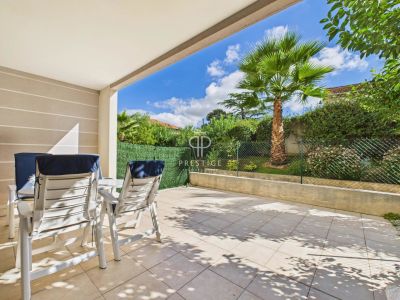 A bright and airy 2 bedroom apartment in a modern residence built in 2003 with swimming pool, in the sought-after Petite Juas neighbourhood of Cannes. This 73m2 ground floor property offers a pea......