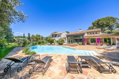 Beautiful and spacious 5 bedroom Provencal villa with swimming pool in a tranquil setting just 5 minutes from the old village of Mougins, perfect as a family home or a charming second residence. ......