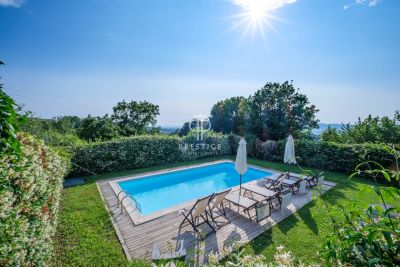 Enjoying breathtaking countryside views from its elevated location in Santa Maria a Monte, Pisa province, is this luxuriously renovated three bedroom modern villa with separate apartment and indoor......